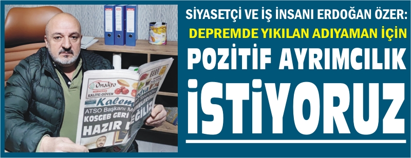 Ekonomik olarak deprem süreciyle birlikte büyük mağduriyetler yaşayan Adıyaman’a pozitif bir ayırımcılığın tanınması gerekliliğini ifade eden Özer, “Devlet özellikle sıfır faizli krediler sunmalı” dedi.