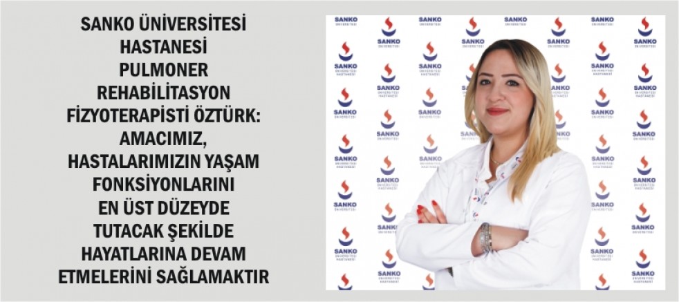 SANKO Üniversitesi Hastanesi Pulmoner Rehabilitasyon Fizyoterapisti Güler Öztürk, “Amacımız, hastalarımızın yaşam fonksiyonlarını en üst düzeyde tutacak şekilde bağımsız olarak hayatlarına devam etmelerini sağlamaktır” dedi.