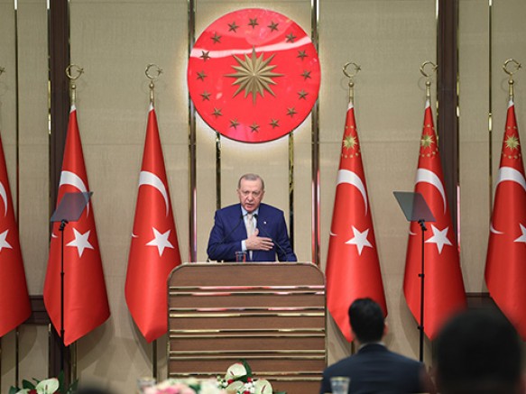 Cumhurbaşkanı Erdoğan, sene sonu Kapasite Geliştirme ve Eğitim Çalıştayı’nın Avrupalı Türkler başta olmak üzere yurt dışındaki vatandaşlar için hayırlara vesile olmasını dileyerek, şöyle devam etti: “Sözlerimin hemen başında mübarek üç aylarınızı ve bu gece idrak edeceğimiz Leyle-i Regaib’inizi ayrı ayrı tebrik ediyorum. Rahmet ve mağfiret ikliminin kalplerimizi kuşattığı bu önemli gecenin, 86 milyon vatandaşımızla birlikte gönül coğrafyamız ve tüm İslam alemi için hayırlar getirmesini temenni ediyorum. Peygamber Efendimiz bir Hadis-i Şerif’lerinde şöyle buyuruyor; ‘Mümin, yeşil ekine benzer. Rüzgarla eğilir fakat yıkılmaz. Rüzgâr sakinleştiğinde yine doğrulur. İşte mümin de böyledir; o da bela ve musibetler sebebiyle eğilir fakat yıkılmaz.’ Evet, Müslümanlar olarak Filistin’de, Lübnan’da, Sudan’da ve dünyanın birçok yerinde kardeşlerimiz sancılı günler yaşıyoruz. İsrail’in insanlık dışı saldırıları sebebiyle enkaz yığınına dönen Gazze’de 2 milyonu aşkın Filistinli çok zor şartlarda hayata tutunmaya çalışıyor. Sınırımızın hemen öte tarafında 14 yıllık mücadelenin ardından Suriye halkı içeriden ve dışarıdan yapılan sabotajlara rağmen ülkelerini yeniden toparlamak, yeniden ayağa kaldırmak için canhıraş bir çaba gösteriyor. Avrupa’dan Asya’ya kriz ve belirsizlik dalgasının yükseldiği bir dönemde bela ve musibet rüzgarları karşısında yıkılmamak için her zamankinden daha fazla dayanışmaya, daha fazla kardeşliğe ihtiyaç duyuyoruz.”
